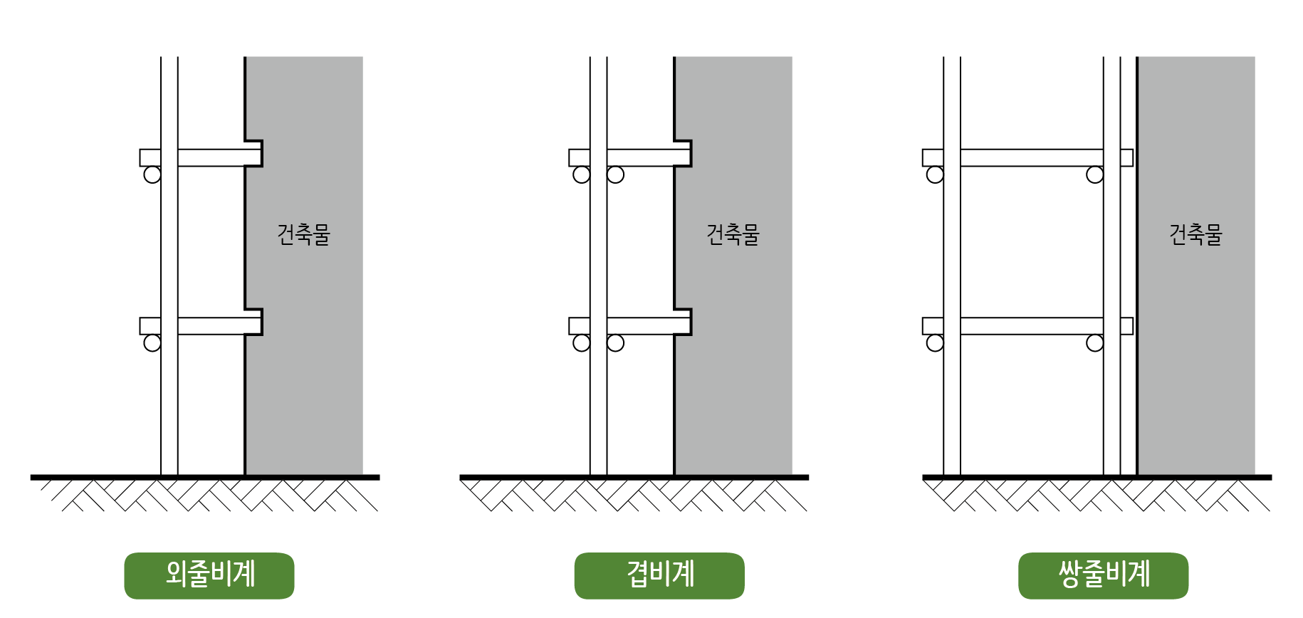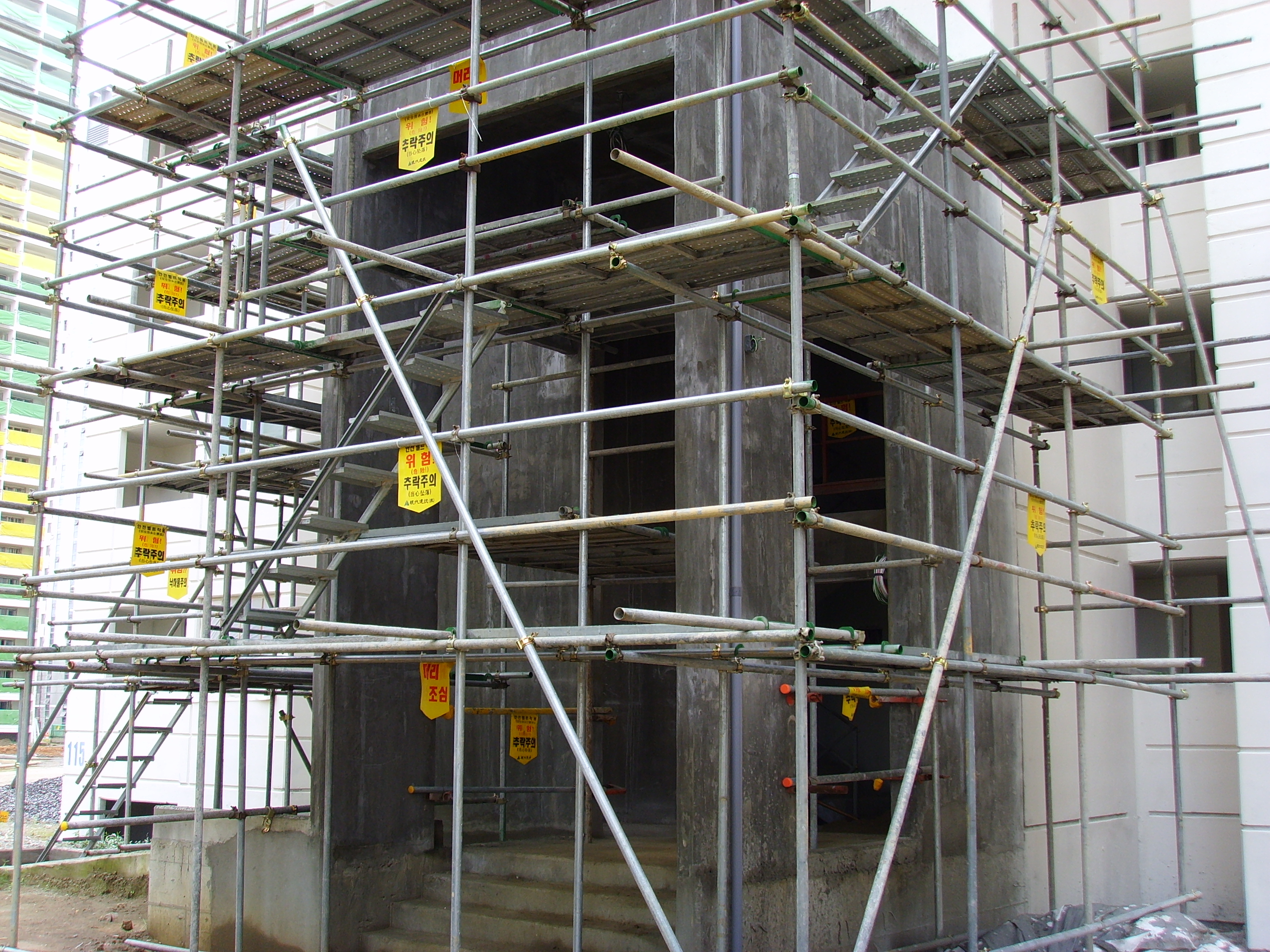 예정에는 통나무비계 등도 기준에 있었으나 이제는 거의 사용하지 않습니다. 또 현재는 시스템 비계로 거의 바뀌어 가고 있는 추세인 것 같습니다.
