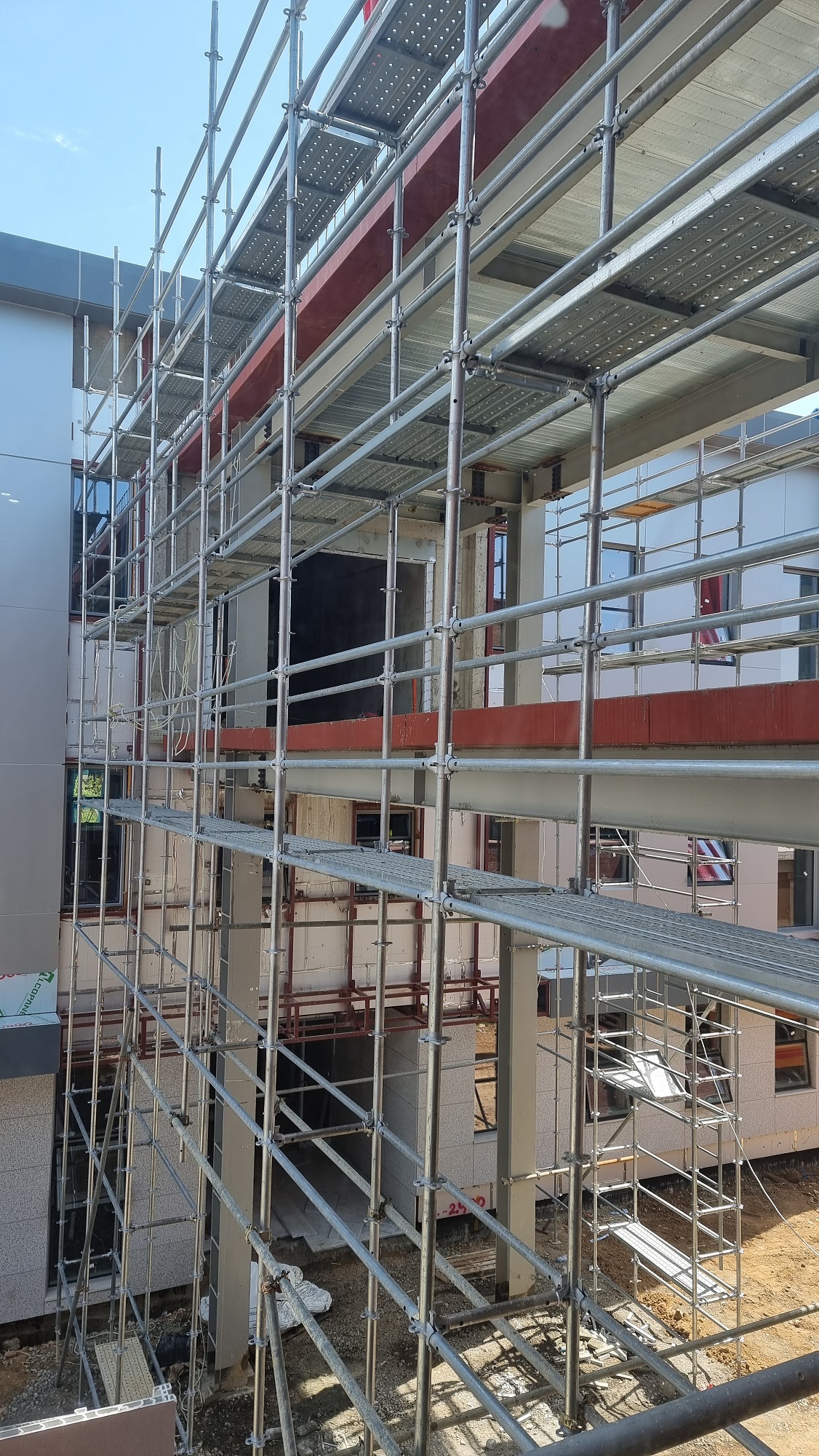 시스템 비계는 비계기둥, 띠장, 장선 등을 규격화해서 현장에서 쉽게 조립할 수 있도록 만든 비계입니다. 최근에는 시스템 비계가 일반화된 것 같습니다.