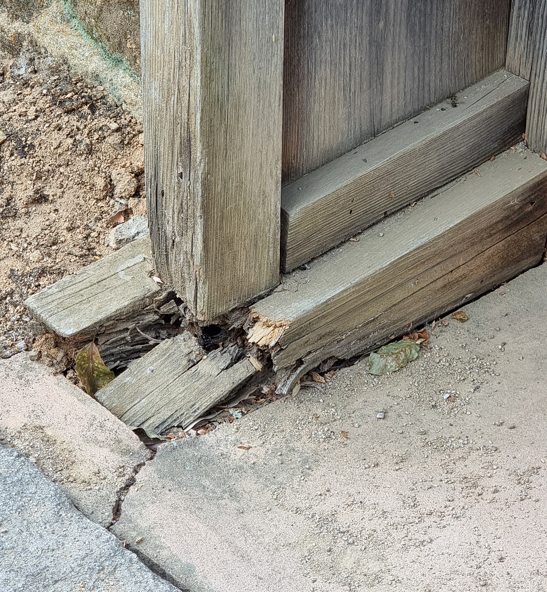 목재는 충해 및 풍화로 인한 부패가 쉽게 발생하기 때문에 주의해야 합니다. 특히 기초토대, 흙에 접하거나 지면에 가까운 부재의 부패가 빠르게 나타납니다.