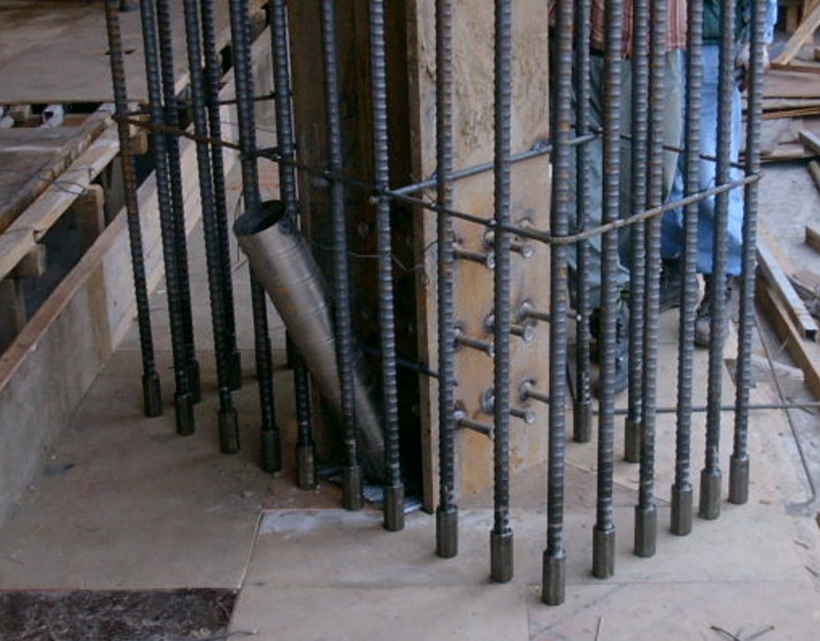 기둥 철근을 연결하기 위해 커플러를 설치해서 배근합니다.