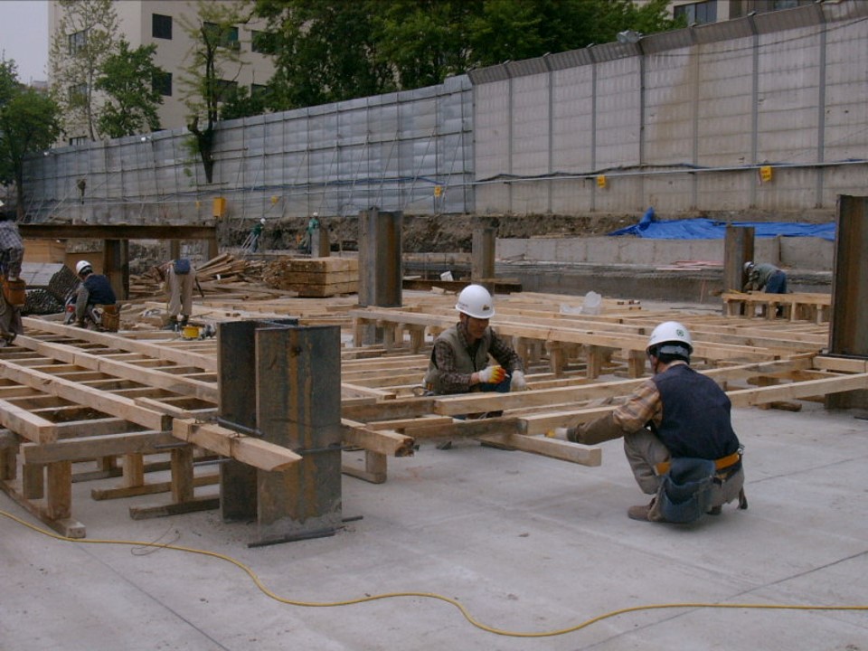 소정의 깊이만큼 굴착했다면 슬래브와 보 등 지하 구조물을 순차적으로 시공해갑니다.