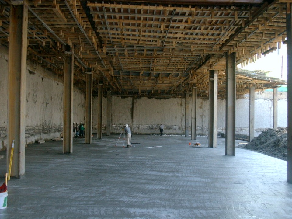 지하층을 굴착하고 있는 사진입니다. 지상 1층 거푸집이 떠있는 것을 볼 수 있습니다.