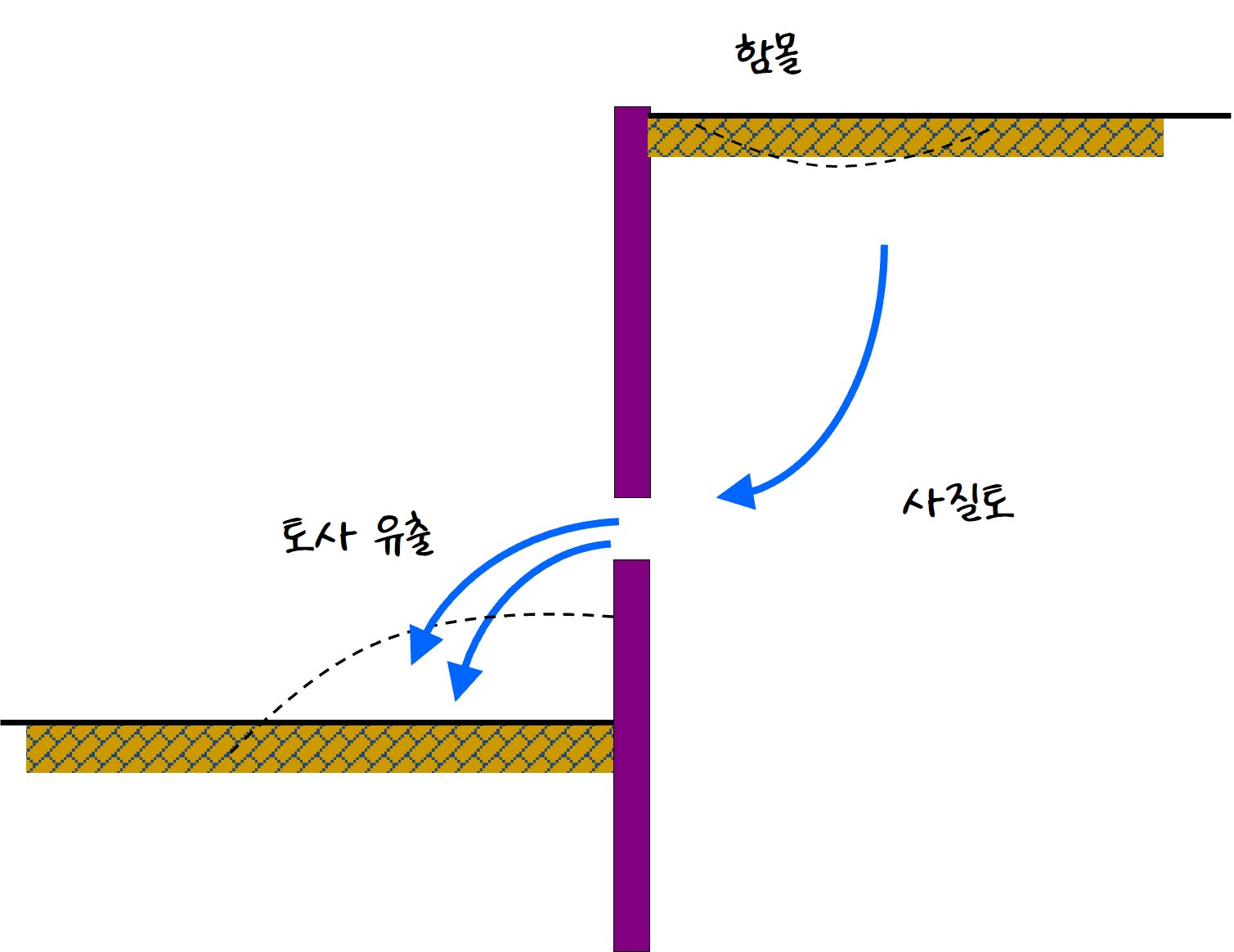 보일링현상도 훍막이벽체를 깊게 시공하는 편이 획실한 대책이 됩니다. 대책으로는