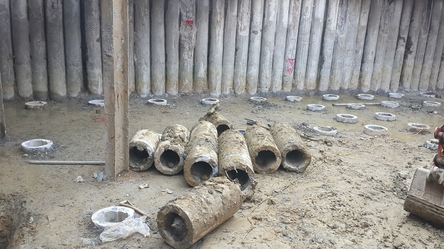 재래식으로 말뚝머리를 정리하려면 일단 측량을 해서 절단 높이를 표시한 후 철근이 손상되지 않을 깊이만큼 그라인더로 잘라내고 집게차로 파쇄하는 식으로 진행합니다.