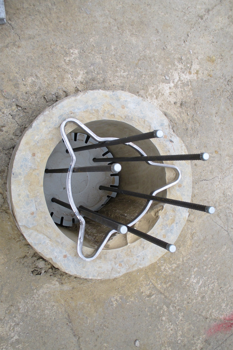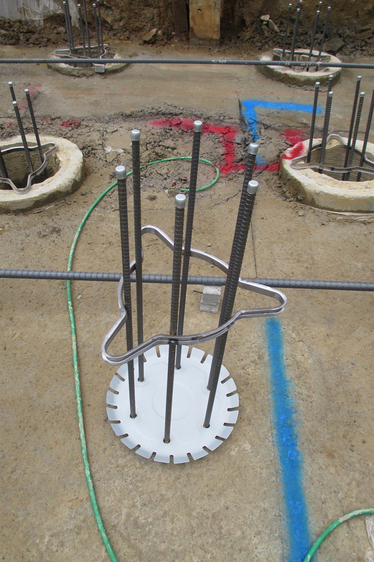 그런데 문제는 말뚝의 철근을 기초 콘크리트 안으로 연장해서 매입을 해야하기 때문에 이 부분을 해결합니다. 그래서 아래 그림처럼 생긴 연결철물을 사용합니다.
