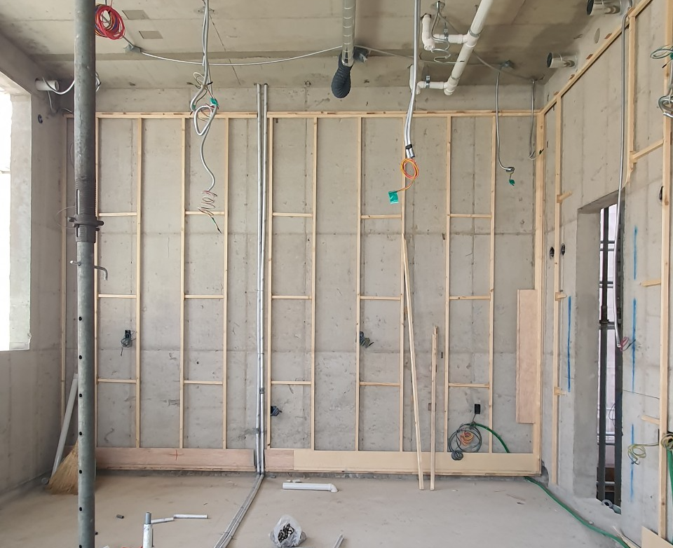 보통 수장공사를 다른 말로 하면 인테리어라고 생각할 수 있습니다. 사용자가 직접적으로 접하는 마감재를 만드는 것을 말합니다. 집의 경우 벽이라면 도배마감이나 도장마감을 하고, 바닥이라면 플로어링 마감을 하겠죠? 최종 마감이니까 당연히 직각으로 각이 진 평평한 면을 만들어야만 합니다. 그런데 콘크리트 벽체는 그렇게 매끄럽지가 않습니다.