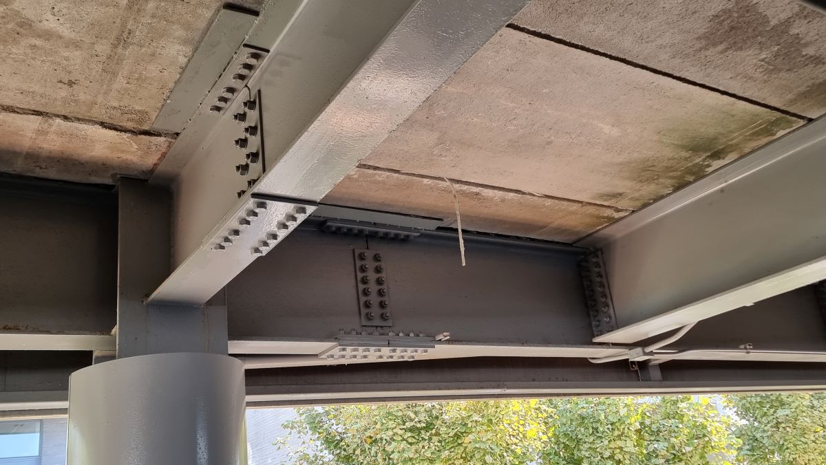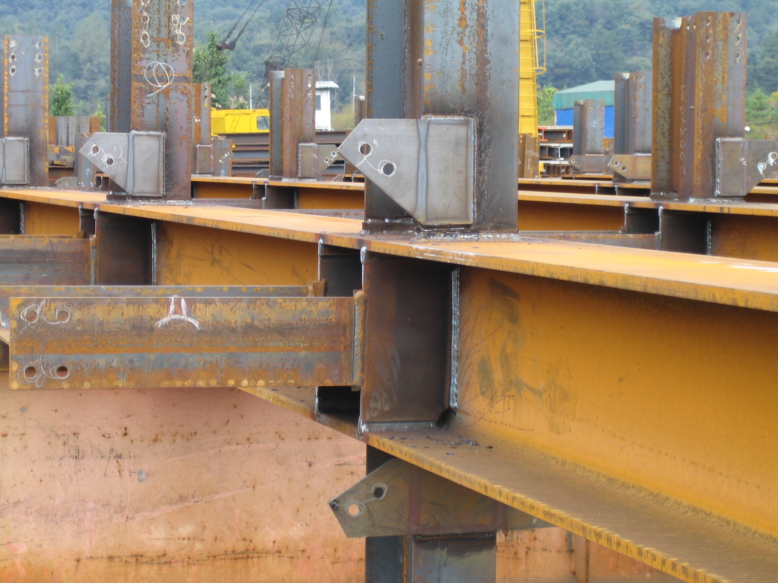 그런데 위 사진에서 보면 고장력볼트로 접합하는 부위에는 녹막이 칠을 하지 않았습니다. 고장력볼트로 접합을 하는 경우 부재사이의 마찰력도 중요한 역할을 하기 때문에 녹막이칠을 하지 않습니다. 녹막이칠을 하면 부재끼리 미끄러지기 때문에 마찰력을 기대할 수 없기 때문이죠.
