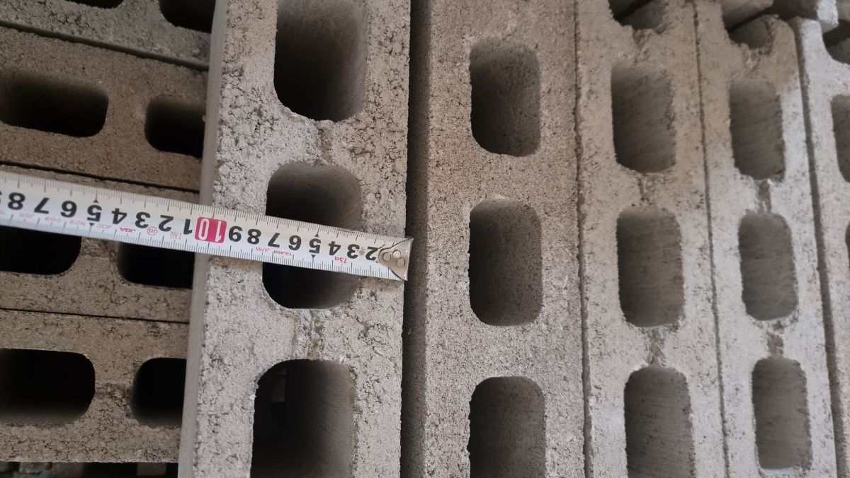 (2) 살두께가 큰 편을 위로 하여 쌓아야 합니다. 위 사진처럼 구멍이 있는 모양으로 거푸집을 만들면 콘크리트가 경화한 후 거푸집을 빼내기가 수월하지 않습니다. 그래서 거푸집이 잘 빠지도록 약간 기울어진 상태로 만들기 때문에 위쪽과 아래쪽에 살두께가 달라지는데, 살두께가 두꺼운쪽을 위쪽에 놓고 모르타르를 깐 후 접합하는 식으로 시공하게 됩니다.