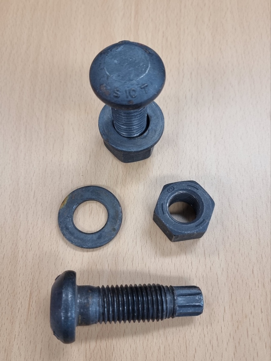 고장력볼트는 와셔와 너트를 한 세트로 결합하는데 와셔와 너트 각각 F35T, F10T인 제품을 사용합니다.