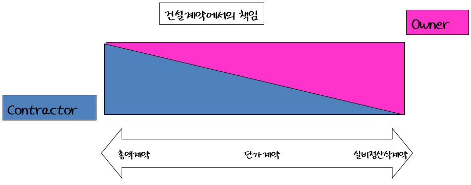 이론적으로 보면 총액계약을 하면 건설회사의 위험부담이 높아지지만 실비정산계약은 위험부담이 낮아집니다. 실비정산을 실공사금액과 별도로 보수를 따로 받기 때문입니다. 그런데 비율보수방식에서 보수는 공사실비의 일정한 비율(Af)로 계산되기 때문에, 건설회사입장에서는 공사비를 키우면 키울수록 유리해집니다. 공사비가 증가하면 건축주의 위험 부담이 커질 수 밖에 없겠죠.