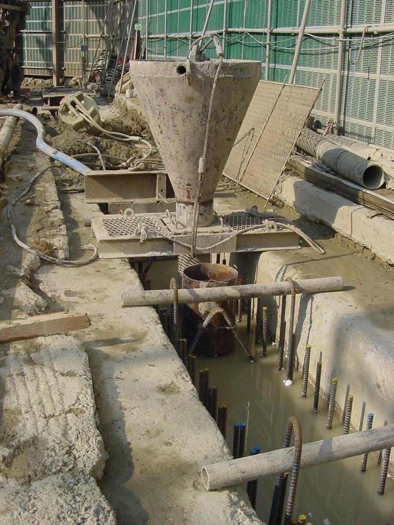 또한 굴착이 다 끝나면 철근망을 삽입한 후 콘크리트를 타설하는데 안정액 속에는 굴착할 때 섞인 부유물들이 많이 섞여 있기 때문에 이 부유물들이 가라 앉을 때까지 기다려야 합니다. 충분히 가라앉은 후에 이 부유물들을 지상으로 빼낸 후 트레미관이라고 하는 타설관을 굴착 저면까지 삽입해서 콘크리트를 타설합니다.
