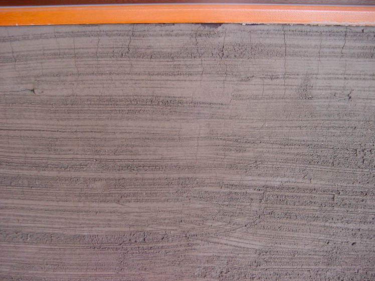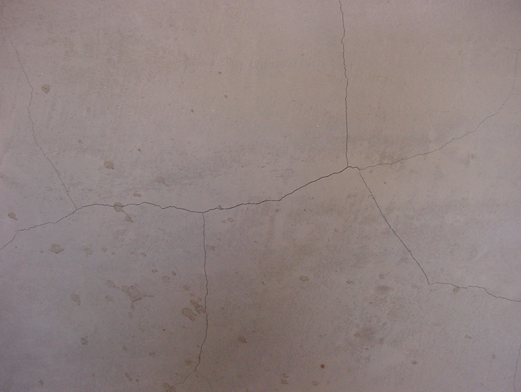 시멘트 모르타르 미장에서 발생하는 균열의 종류는 크게 두 가지가 있습니다. 첫째, 건조수축때문에 발생하는 균열입니다. 아래 사진은 건조수축때문에 발생하는 균열을 보여주고 있습니다.