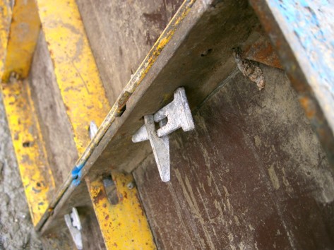 유로폼끼리 맞닿는 면이나 평 타이 등 기타 부재를 연결할 때는 조립 핀(웨지 핀)을 사용합니다.