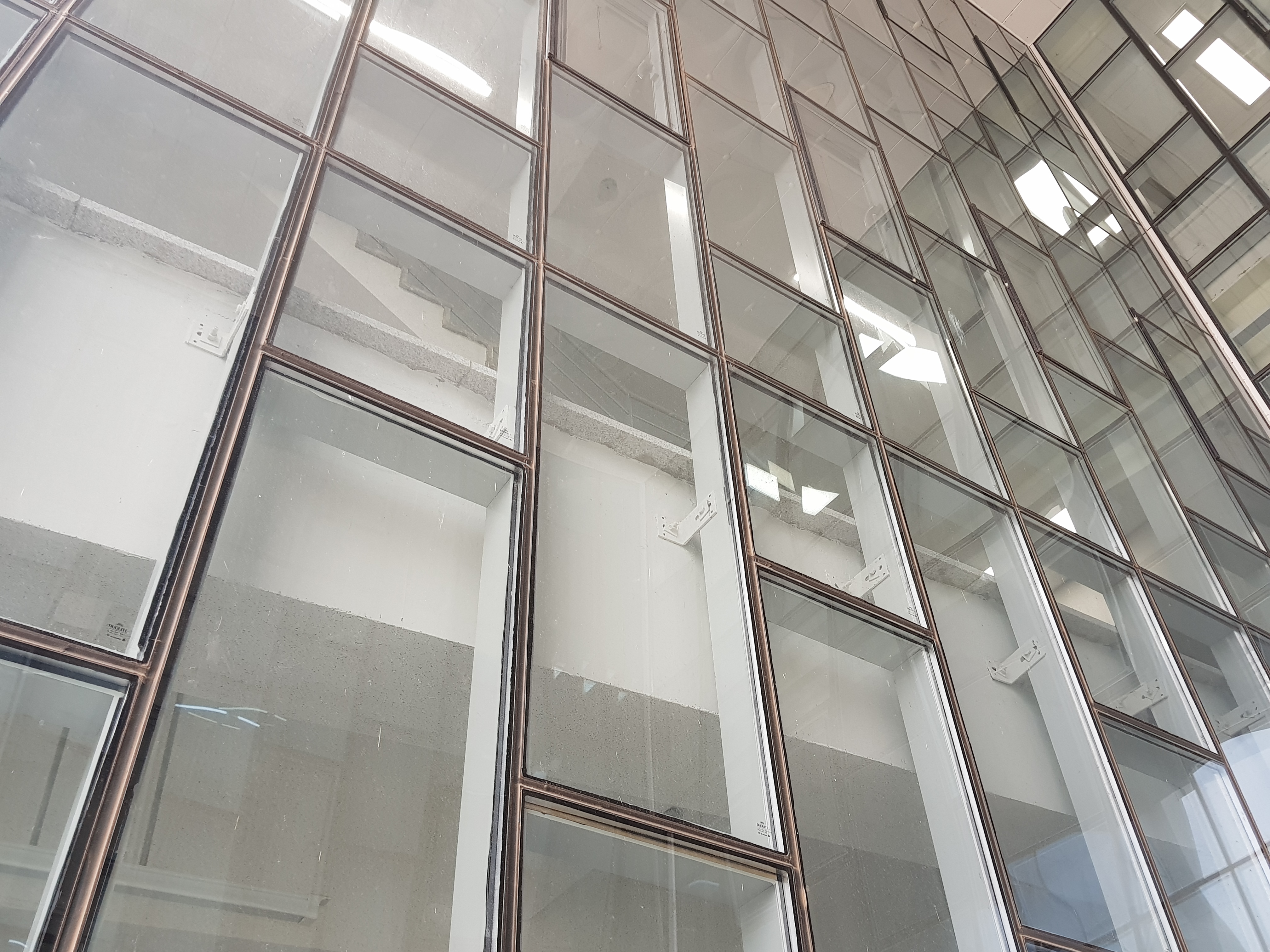 유리를 전면에 노출하는 가장 간단한 방법은 구조체를 안쪽에 숨기고 구조용 실란트를 이용하여 고정하는 방법입니다. 이런 방법을 SSG 시스템(Structural Sealant Glazing system)이라고 하는데, 실리콘 같은 구조용 실란트(Structural sealant)를 사용해 멀리언에 직접 접착하는 방법입니다.