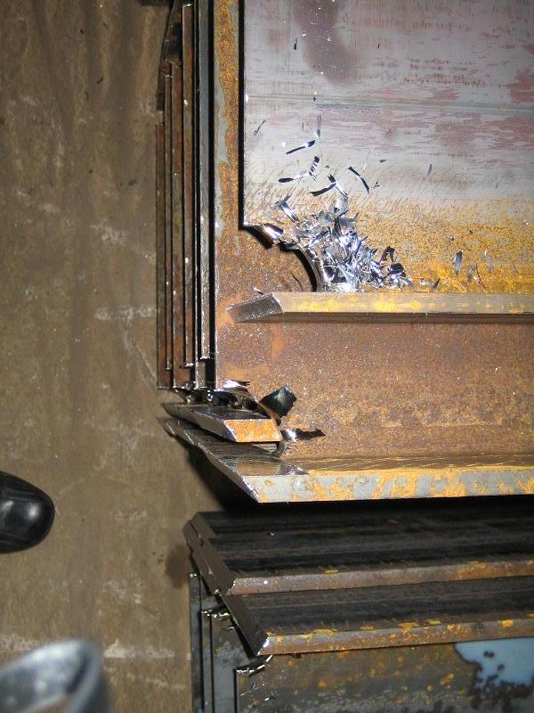 스캘럽은 이렇게 용접선이 교차하는 것을 피하기 위해 부채꼴로 오목 들어가게 파놓은 것입니다. 아래 사진은 가공공장에서 현장에 반입하기 전에 H형강에 스캘럽 가공을 한 모습입니다.