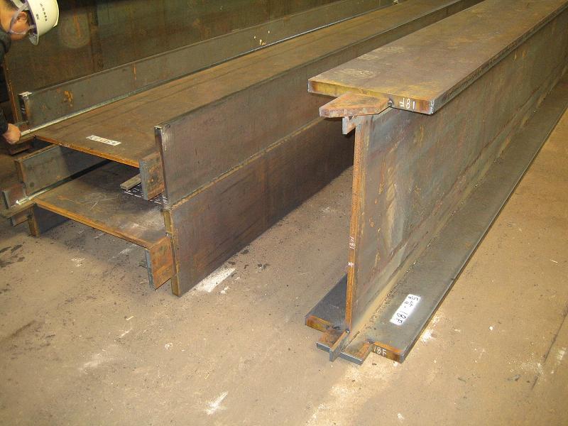 아래 사진은 KS규격품에 없는 형강, 즉 조립부재(Built-up member)를 가공공장에서 제작할 때 엔트탭과 뒷댐재를 덧대서 용접한 사진을 보여주고 있습니다.