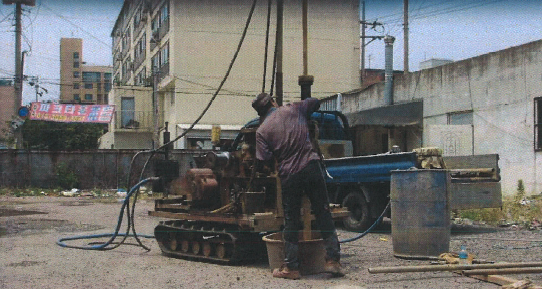 보링(Boring)은 지층의 수직분포 상태를 파악하기 위해 지반에 구멍을 뚫어 지반을 조사하는 방법을 말합니다. 위 사진은 회전 수세식(Rotary wash type) 시추기를 이용해서 BX(Φ=58mm) 규격으로 보링작업을 하고 있는 사진입니다.