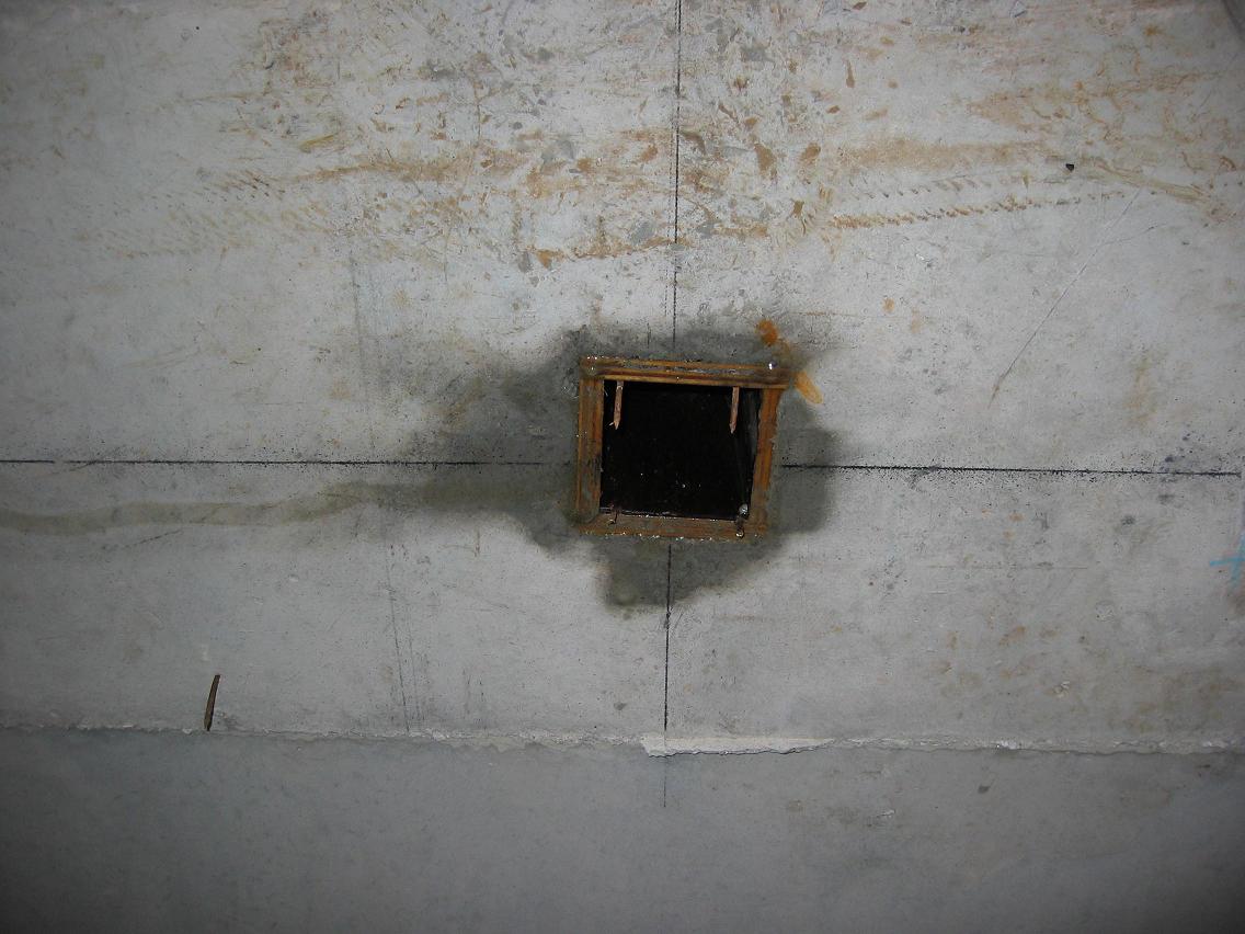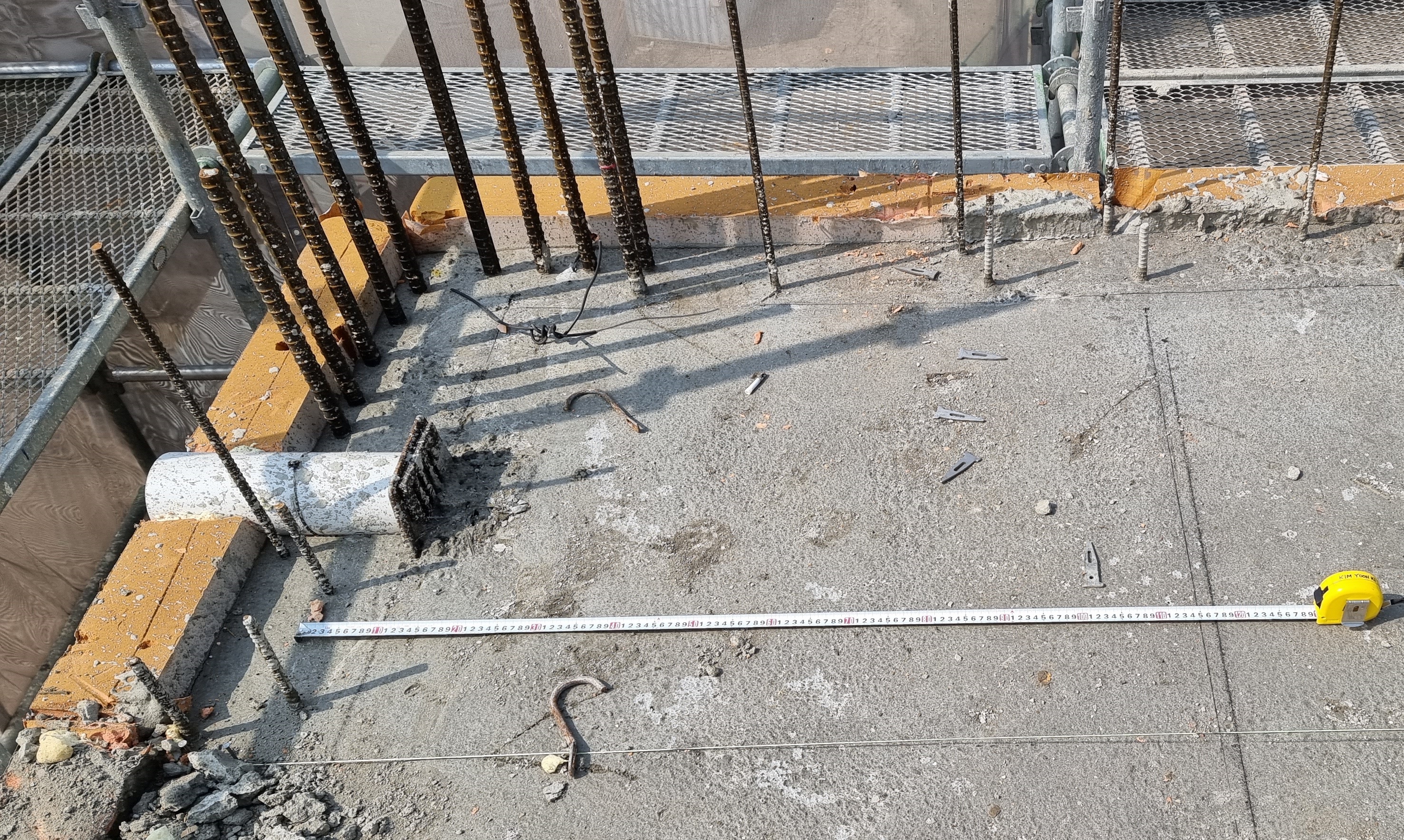 아래 사진을 보면 콘크리트를 타설하기 전에 기준먹이 있는 위치에는 먹매김용 슬리브(Sleeve)를 설치해서 미리 구멍을 만들어 둔 것을 볼 수 있습니다.