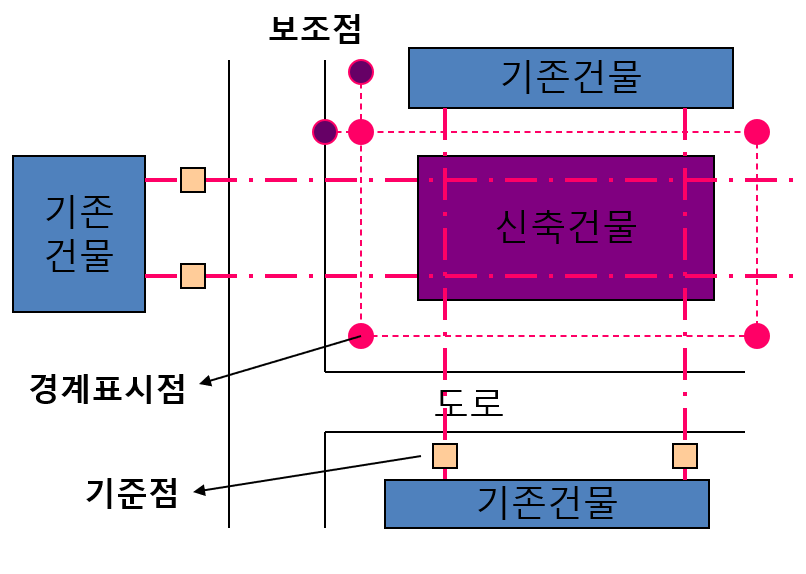 이렇게 실제 대지가 맞지 않게 되었을 때 인접한 이웃과 마칠을 빚을 수 있습니다. 따라서 측량과정에서 인접 대지의 주인과 해당 공사의 건축주, 감독자, 감리자 등이 모두 참석해서 대지 경계점을 명확히 해야 합니다.