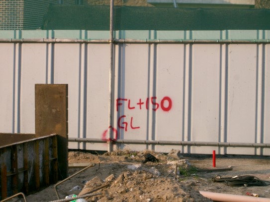 보통 버림 콘크리트면이나 바닥 슬래브를 타설한 후에는 기준 먹매김을 하게 됩니다. 일본식 표현으로 오야먹이라고 학기도 하는데, 건물 외곽선의 기준점이 됩니다.