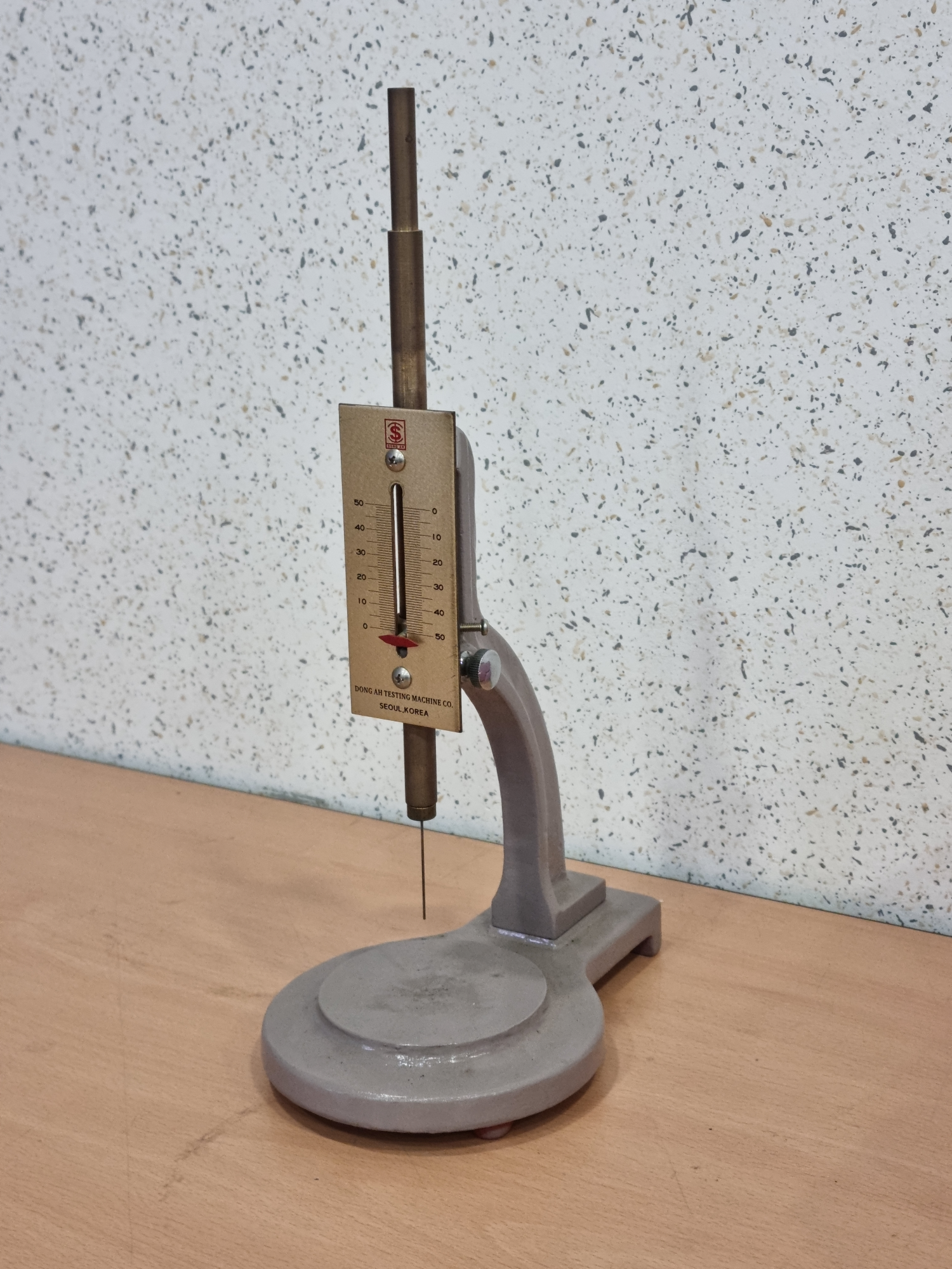 시험은 플런저가 있는 비카트 장치(위 사진 참조)를 사용합니다.