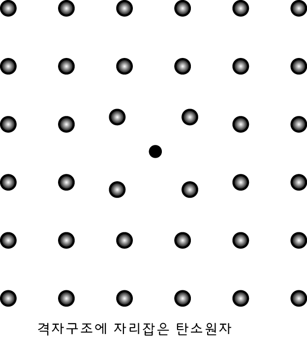 일단 평면상으로 본다면 철은 일정한 간격으로 격자 형태로 배치되어 있습니다. 이 격자구조의 배치는 강재의 역학적인 성질을 이해하는데 매우 중요합니다.